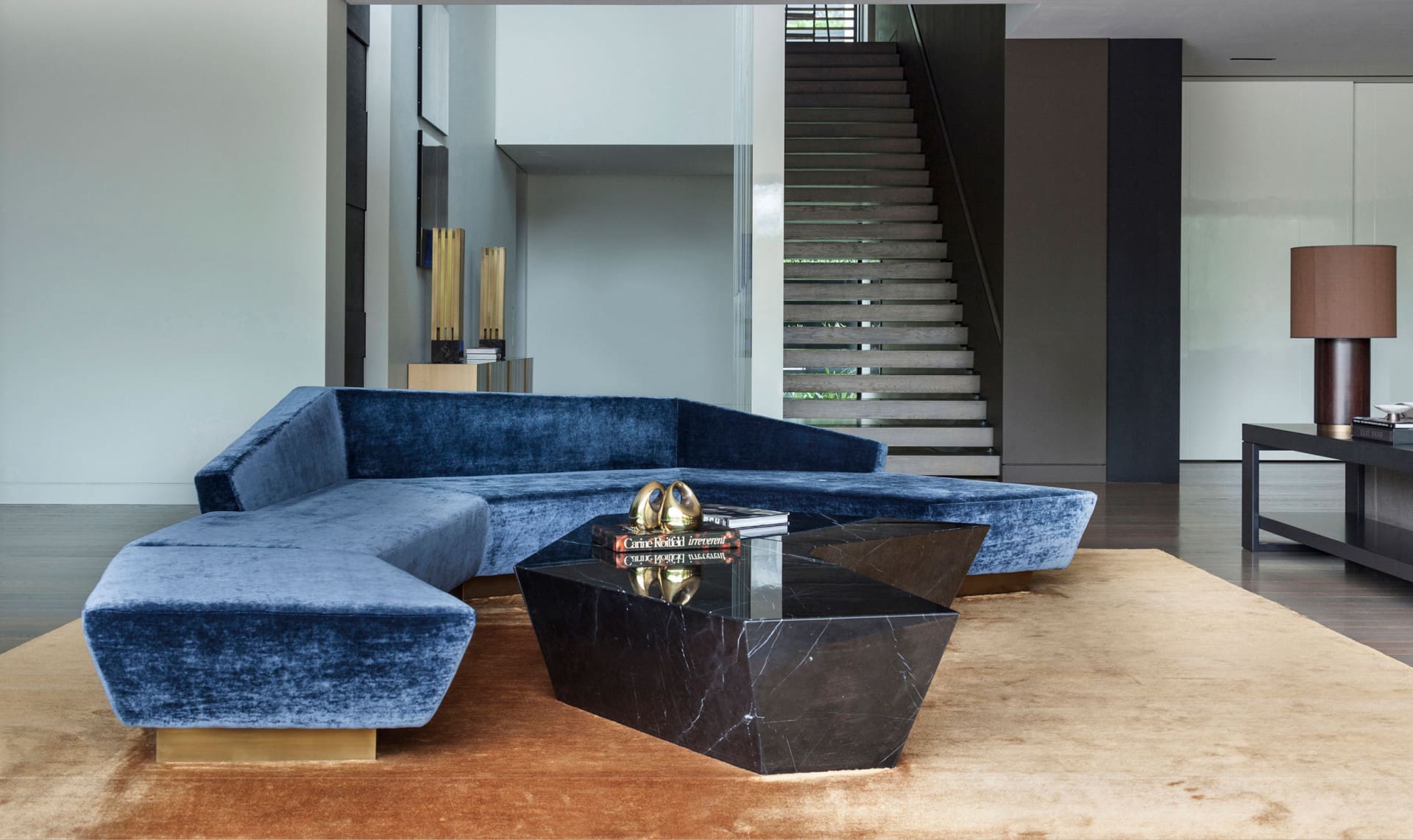 We provided specially-made furniture, seating and lighting for this ultra-luxe, unabashedly modern mansion in the Athenian suburbs. Like islands floating in the vast, open-plan living area, the oversized, angular furniture makes a dramatic statement. Furniture and objects are arranged in considered compositions, carefully calibrated according to the purpose of each room. Each distinct zone exerts a gravitational pull that draws the eye and invites physical and emotional engagement with the space.